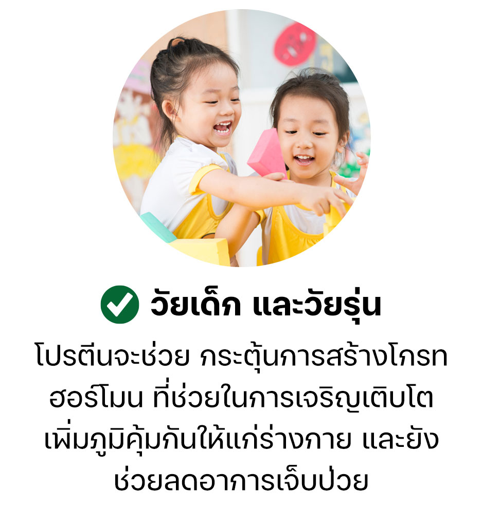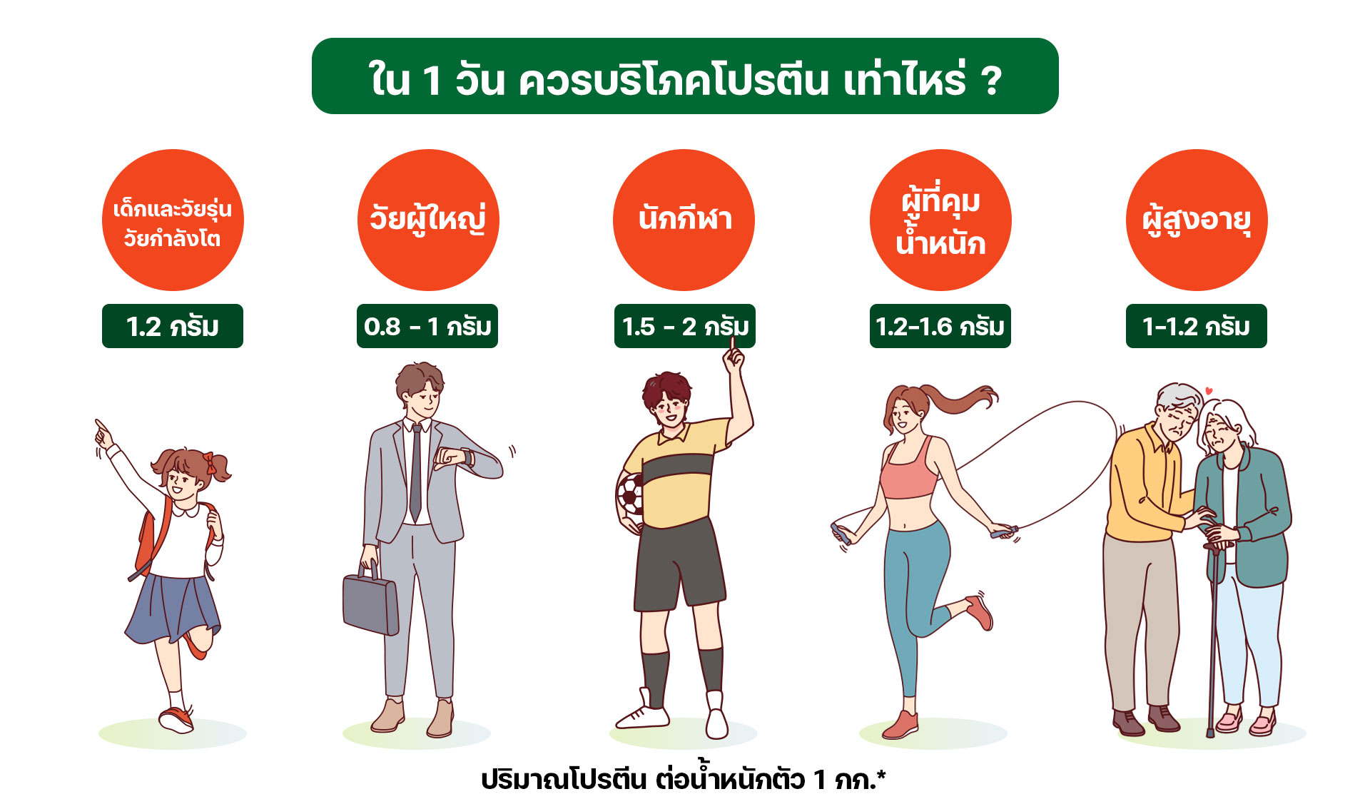 ร่างกายของเราประกอบไปด้วย โปรตีนมากถึง 14-18 เปอร์เซ็นต์ โปรตีนนั้นจะเป็นสารอาหารที่ถูกดึงมาช่วยในการเจริญเติบโต ของร่างกาย (ในเด็ก และวัยรุ่น) และช่วยในการซ่อมแซมส่วนที่สึกหรอของร่างกาย (ในวัยผู้ใหญ่ ผู้สูงอายุ ผู้ป่วย และนักกีฬา) เราจึงมีความจำเป็นที่ต้องทานโปรตีน เป็นประจำทุกวัน อย่างหลีกเลี่ยงไม่ได้