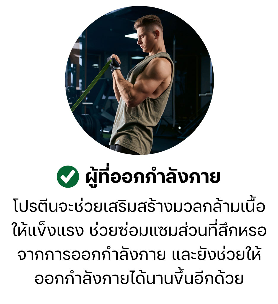 วัยผู้ใหญ่ ควรรับประทานโปรตีนเสริมประเภท “เวย์โปรตีน” จะดีที่สุด โดยเฉพาะผู้ที่ เป็นนักกีฬา ผู้ที่ออกกำลังกายเป็นประจำ หรือ ผู้ที่กำลังอยู่ในระหว่างลดน้ำหนัก เวย์โปรตีนนั้นจะช่วย ซ่อมแซมร่างกายส่วนที่สึกหรอ ฟื้นฟู และเสริมสร้างมวลกล้ามเนื้อ และช่วยเผาผลาญไขมัน